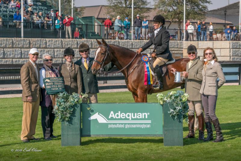Mill Spring, NC - November 12, 2016 - Anita Crouse, representing Green Creek Hounds of Tryon, NC, piloted her own Rickie to top honors in the Tryon International Equestrian Center Field Hunter Championships presented by Adequan® hosted on the Grass Complex at the venue this afternoon. The TIEC Field Hunter Championships presented by Adequan® served as the highlight of the inaugural "Festival of the Hunt", which brought together three fox hunting organizations from the region for a week of sport across the Carolina